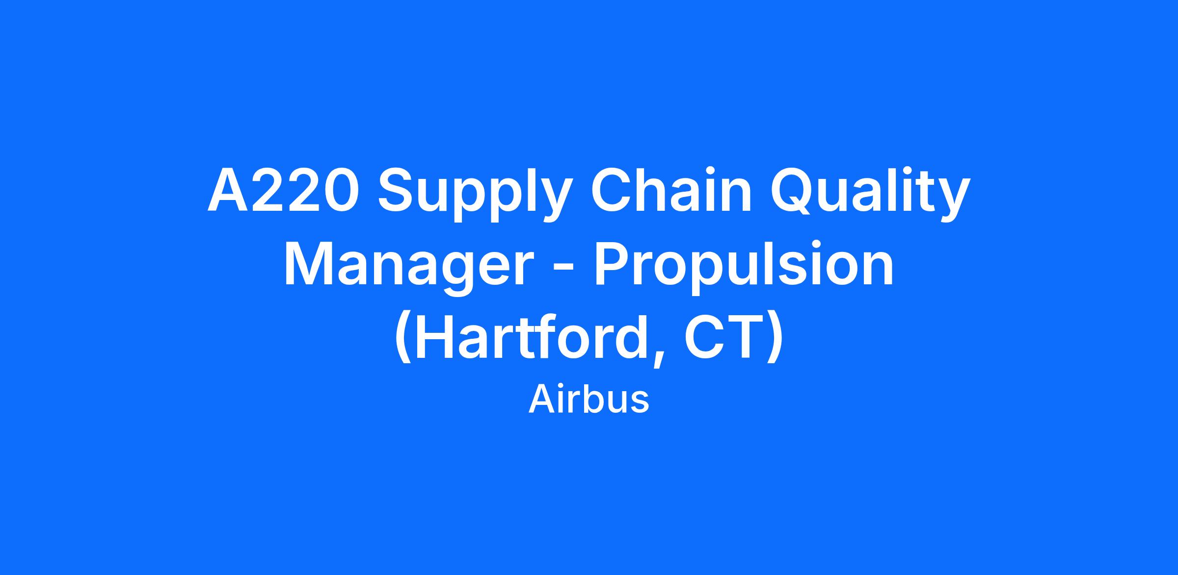 Airbus Commercial Aircraft is looking for a Supply Chain Quality Manager - Propulsion to join our Procurement department in Hartford, CT.