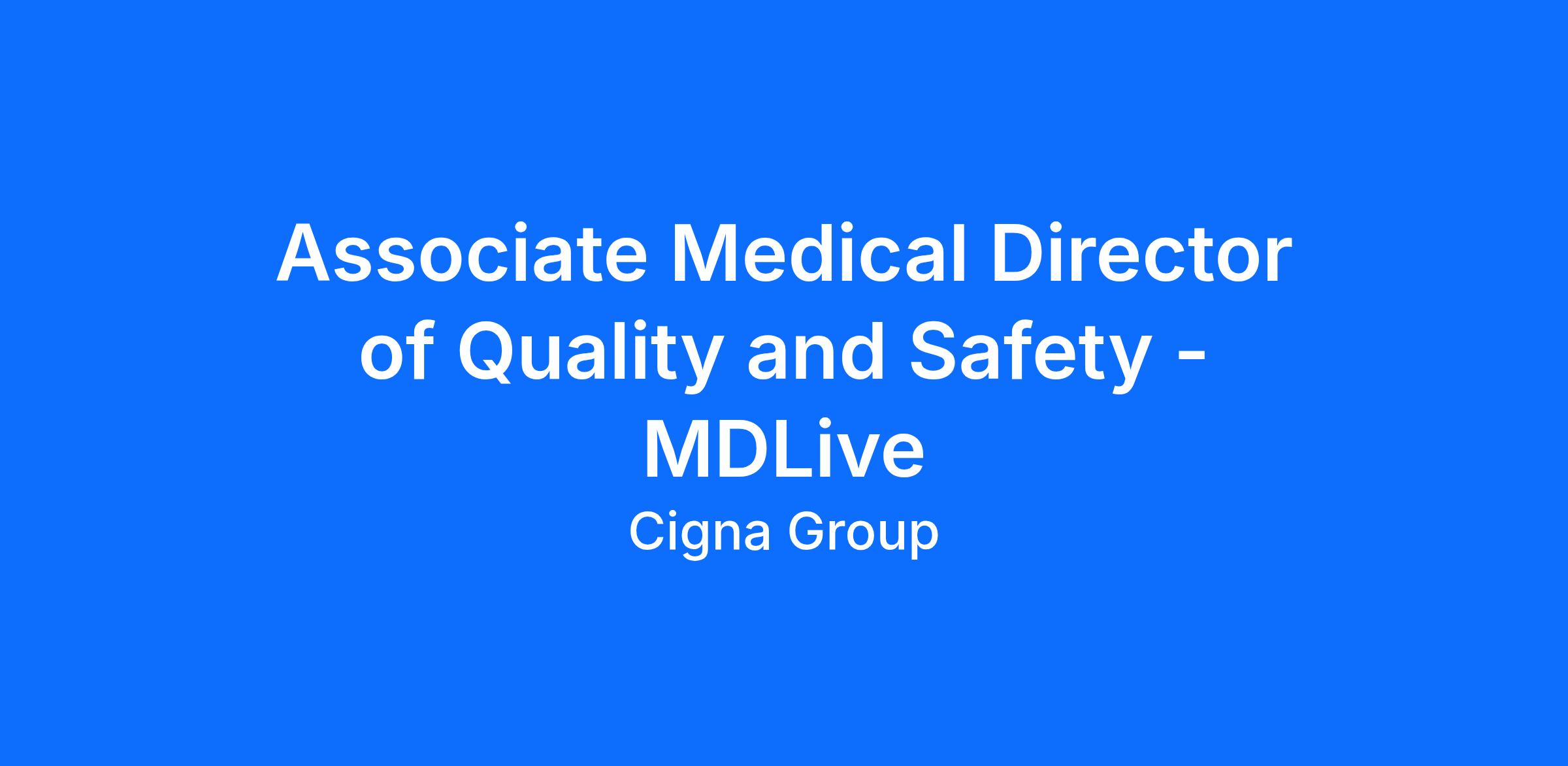 Associate Medical Director – Quality & Safety