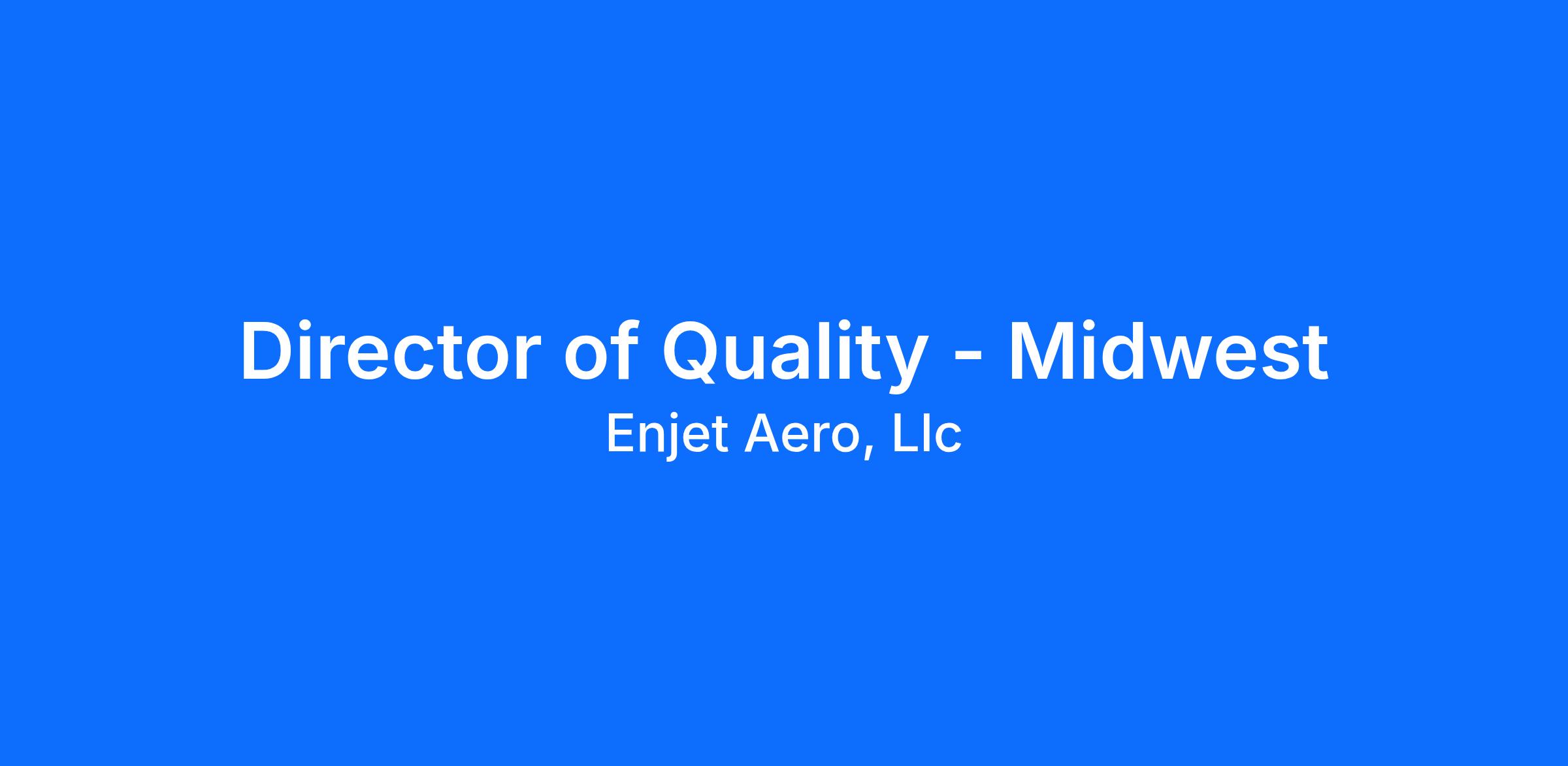 Director of Quality in the aerospace industry provides guidance and advice on methods, procedures, standardization, and requirements associated with AS9100 across various Enjet locations located in the Midwest.