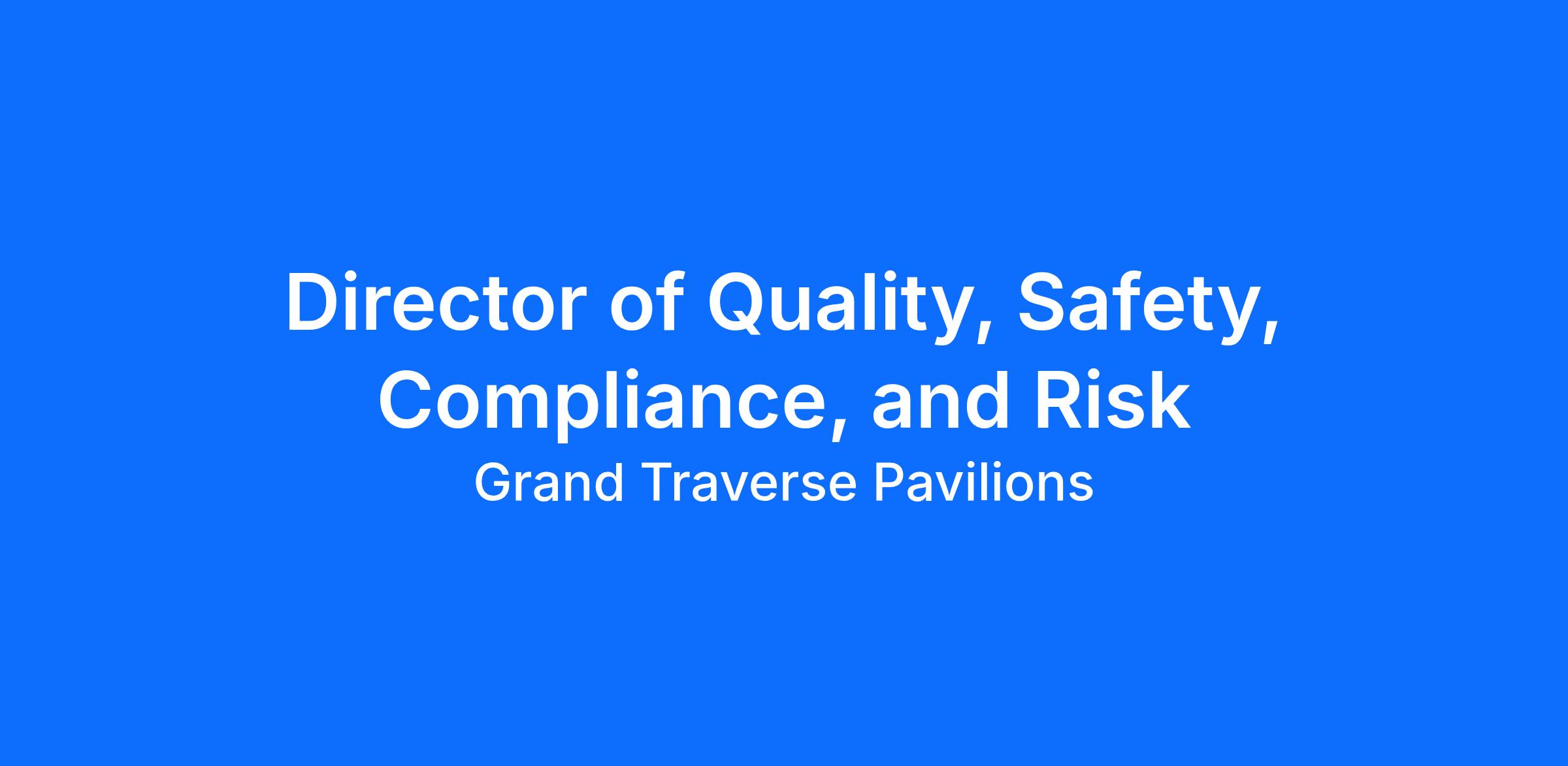 As the Director of Quality, Safety, Compliance, and Risk, you will