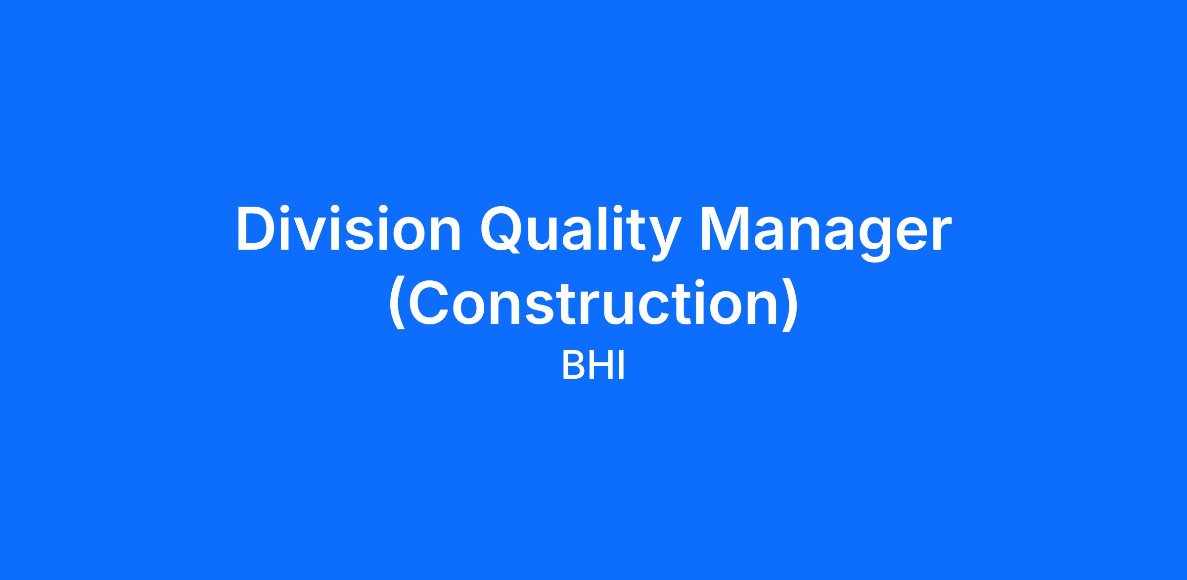 At BHI, we are more than just a company; we are a family dedicated to developing our people and providing for families. Since our establishment in 1968, BHI has grown into a leading provider of comprehensive construction and industrial services, specializing in vertical and horizontal construction across building, energy, infrastructure, and mining markets. Our success is fundamentally built on a team-oriented atmosphere, fostering a positive work environment where every team member is valued. We seek individuals who demonstrate strong communication skills, a detail-oriented approach, a growth-oriented mindset, efficiency, pride in their work, safety-consciousness, and a commitment to great customer service. As a Division Quality Manager, you will be at the forefront of ensuring these values are upheld through rigorous Quality Control processes. Your role as a Division Quality Manager is crucial in maintaining our high standards and protecting our reputation for delivering exceptional results. We are looking for a Division Quality Manager who thrives in this environment and is eager to make a significant impact.