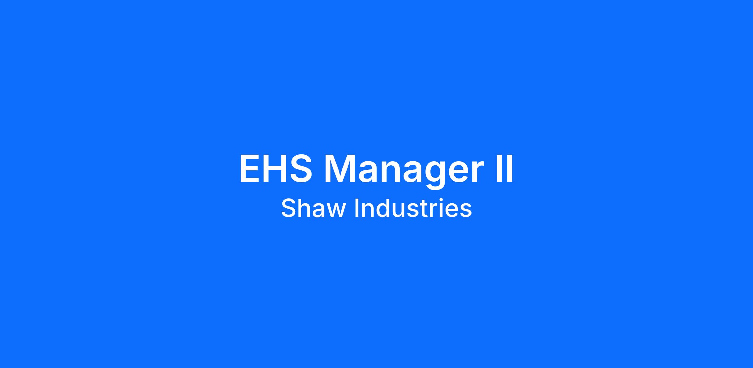 Shaw Industries is hiring an EHS Manager to oversee the safety and environmental functions at the plant level and assist with Corporate-wide programs as needed.
