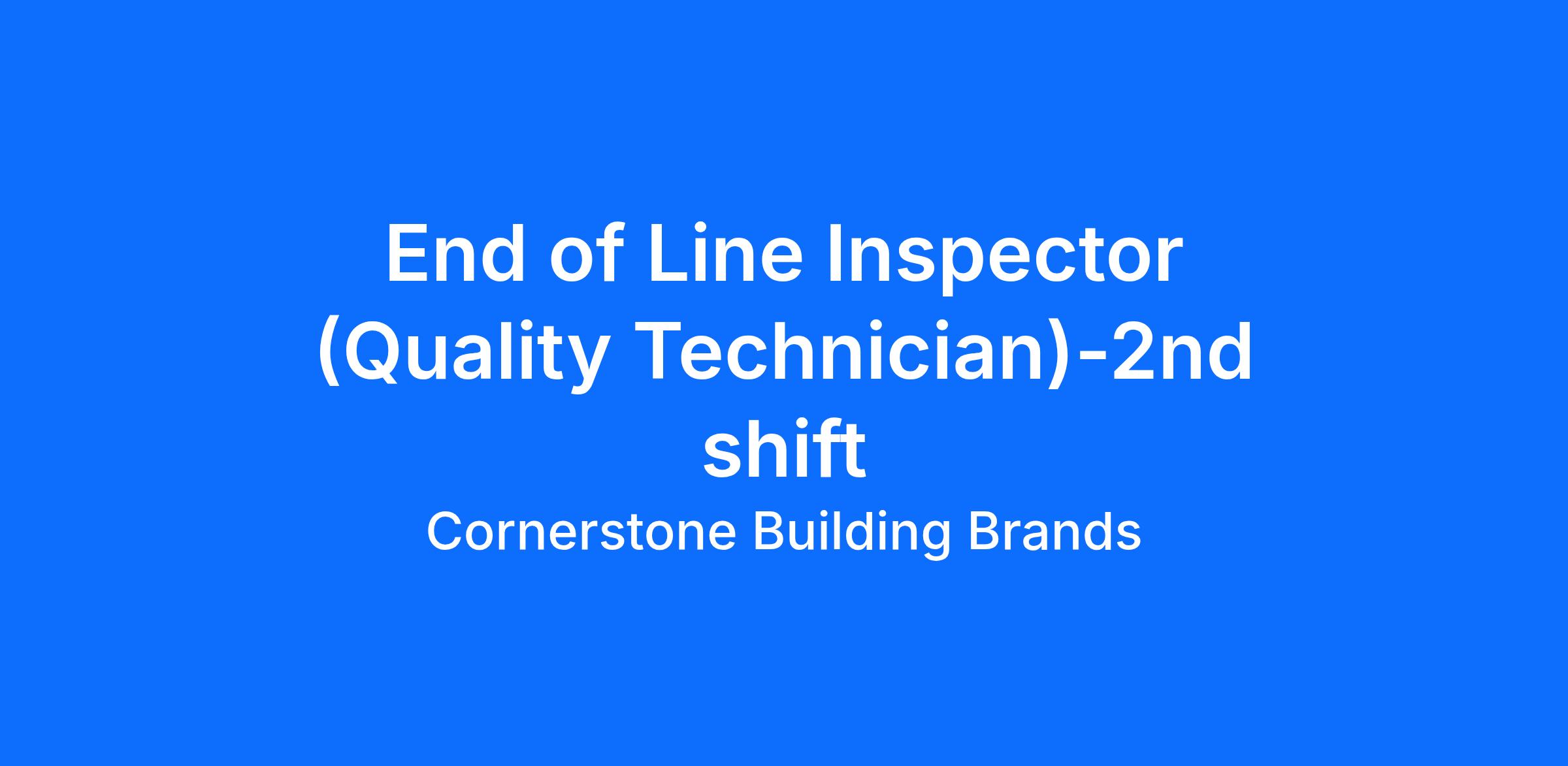 The Quality Technician – End of Line Inspector (EOL) performs detailed inspections of fabricated parts, in‑process products, and outgoing shipments to ensure compliance with Cornerstone Building Brand quality standards and specifications. This role supports quality assurance through inspections, testing, documentation, and collaboration with cross‑functional teams.