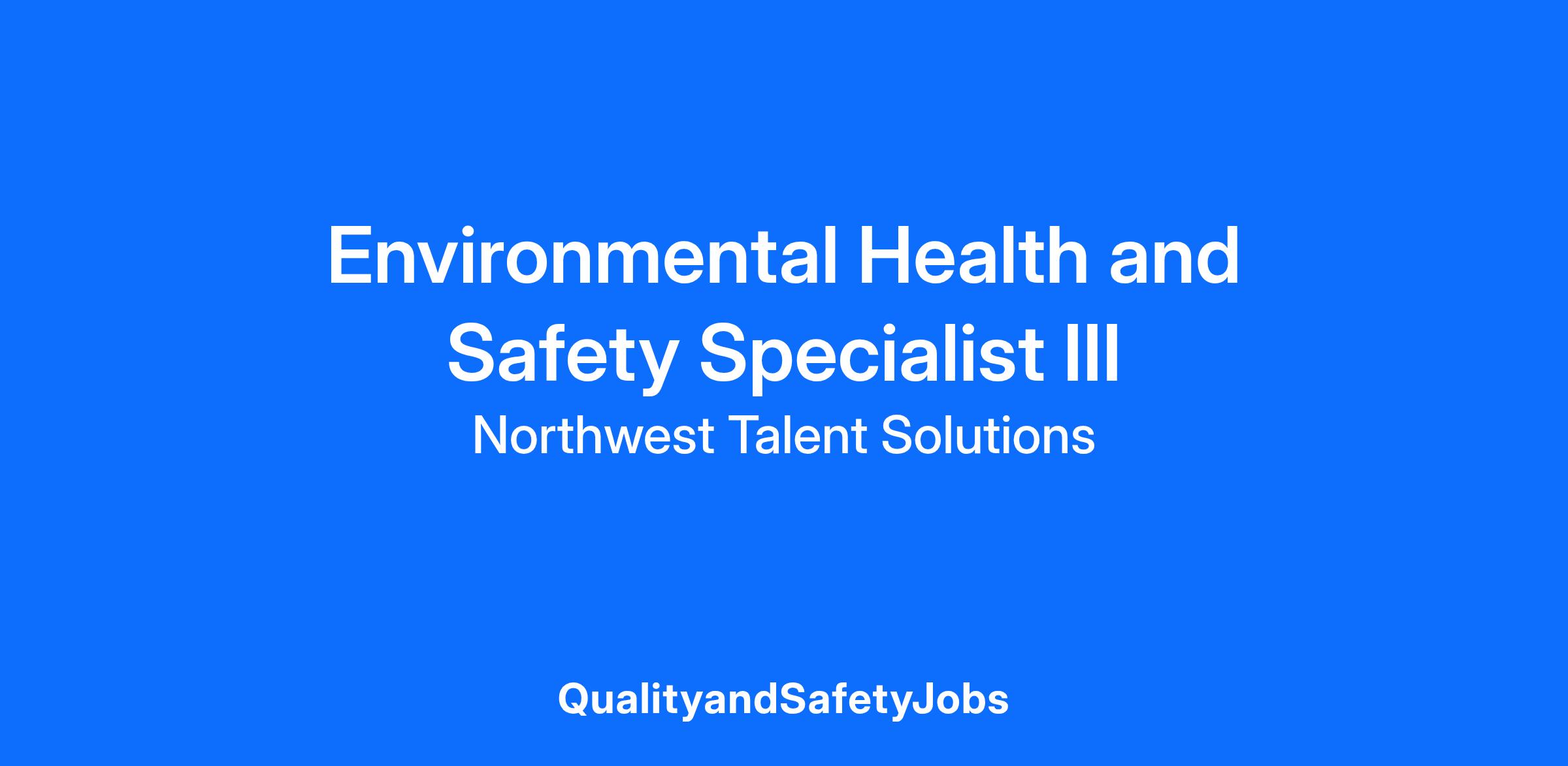 Northwest Talent Solutions is partnering with a global manufacturing leader to identify an accomplished Environmental Health & Safety (EHS) Specialist III who can drive operational excellence, safety leadership, and environmental compliance across multiple sites.