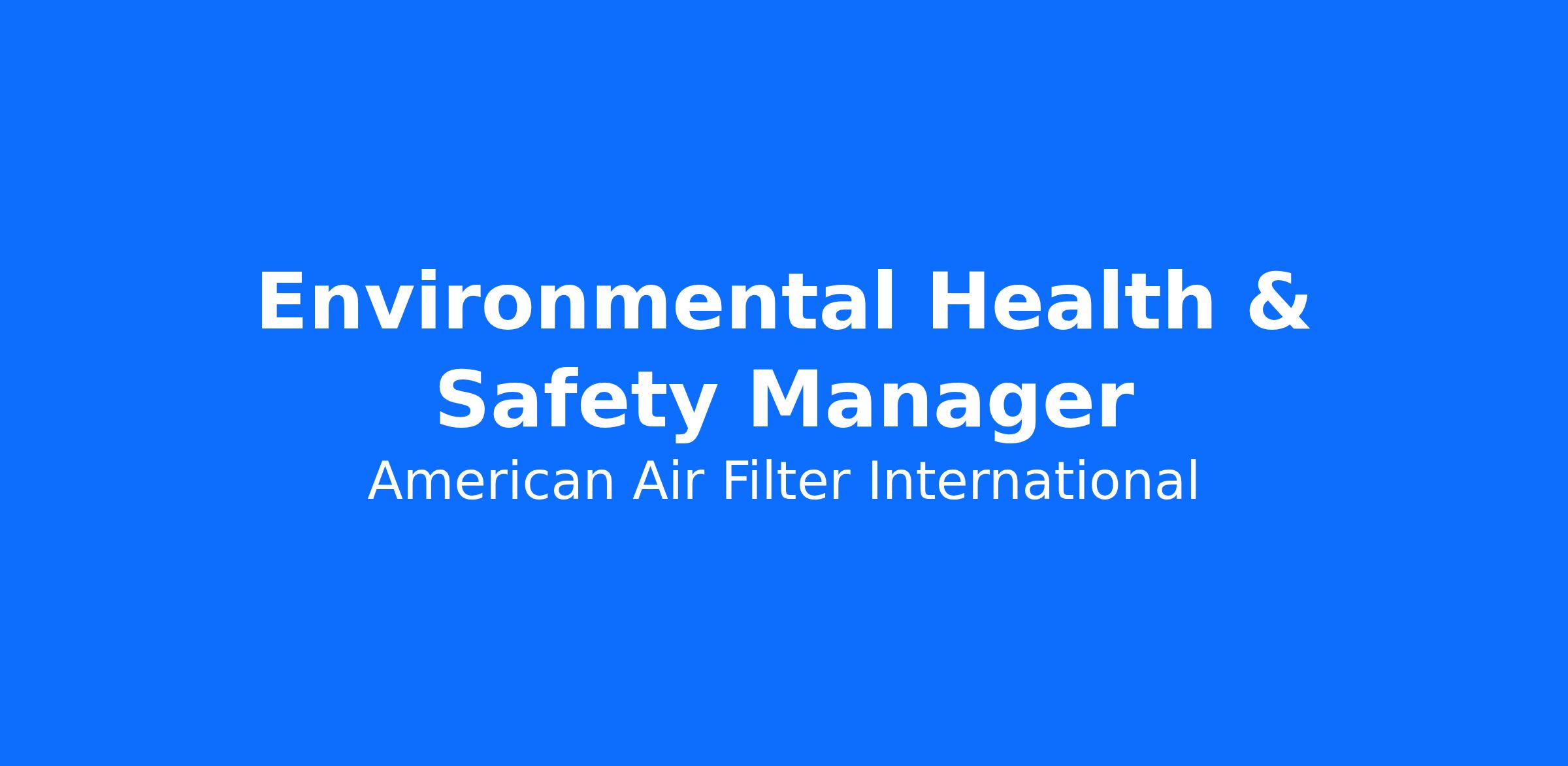 AAF International is an Equal Opportunity Employer M/F/Disability/Veteran.