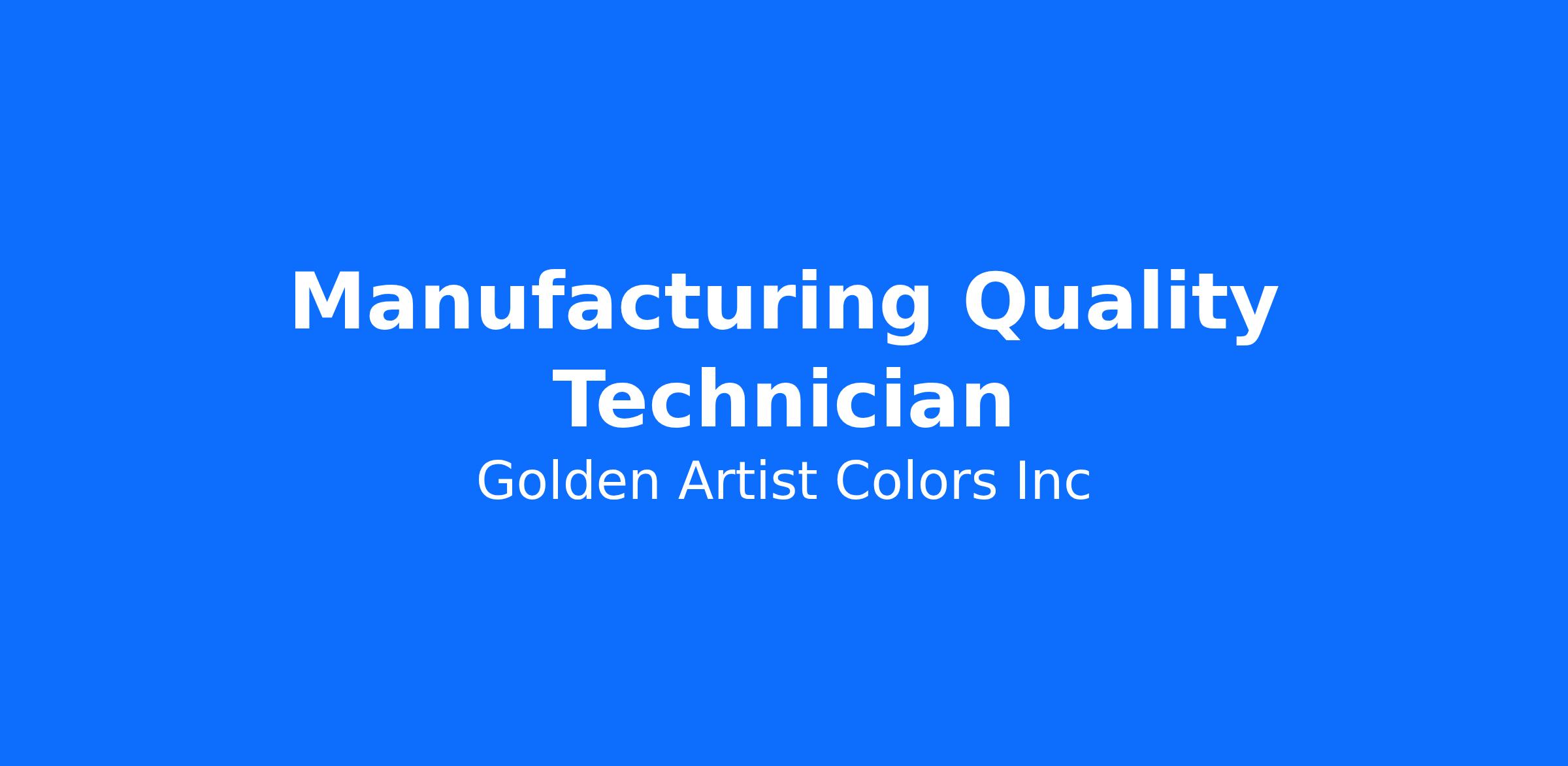 Position Title: Manufacturing Quality Technician
