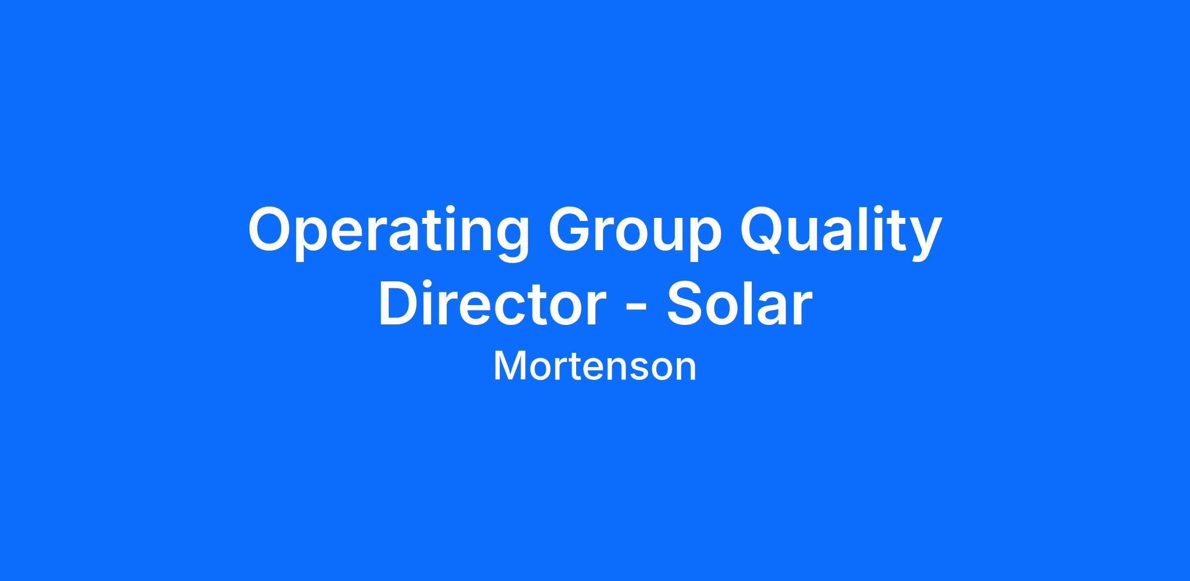 In partnership with the Operating Group Leadership and the Quality Department, the Operating Group Quality Director is responsible for strategically managing quality within the Solar operating group and ensuring the system is fully implemented and operating in accordance with group and company requirements.