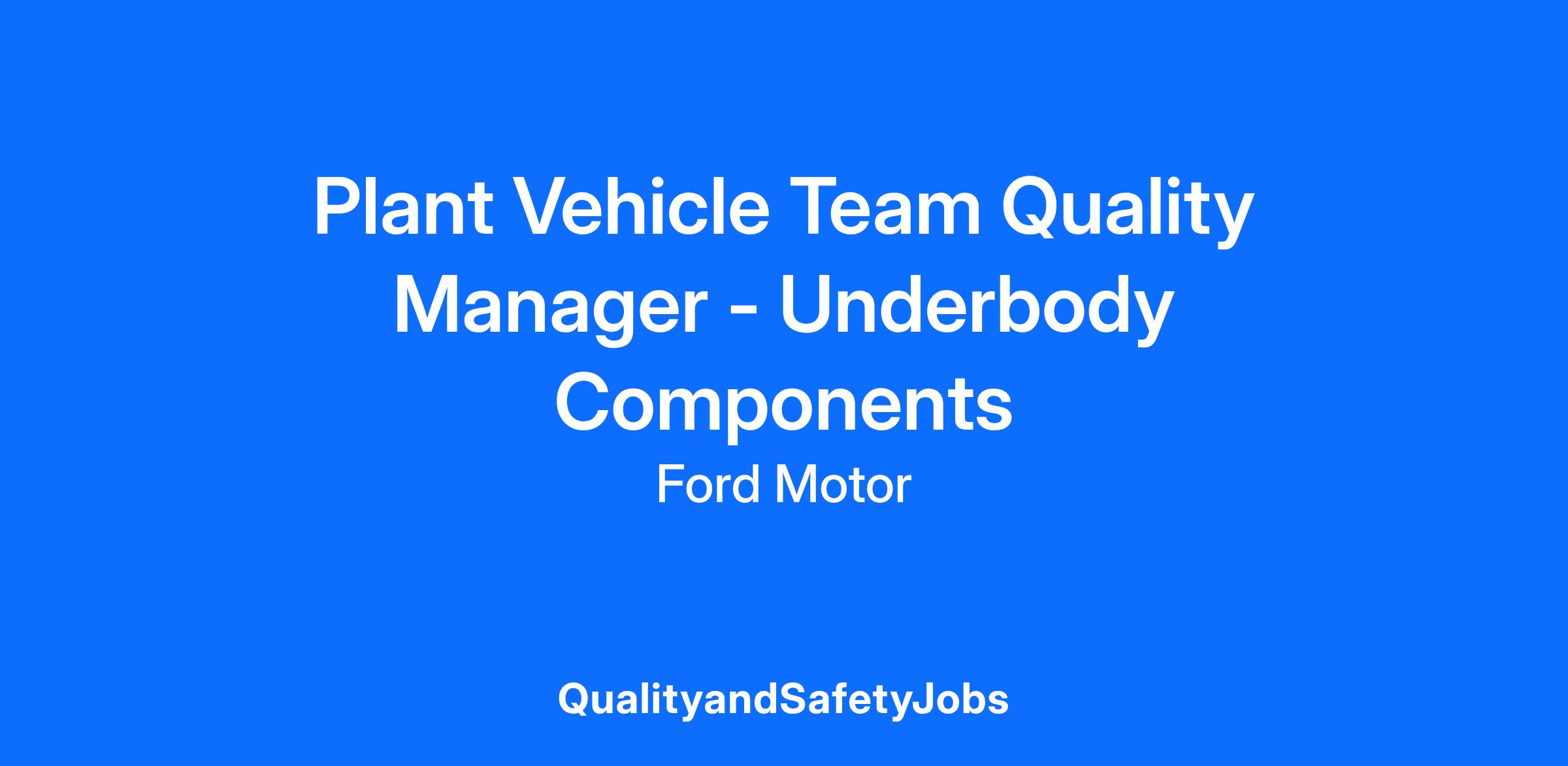 At Ford Motor Company, we are committed to delivering exceptional quality in every vehicle we produce. The Vehicle Hardware Engineering Plant Vehicle Team Underbody Quality Manager plays a critical role in achieving this by providing deep technical expertise, coaching, and cross-vehicle line support to ensure UNSE issues are resolved at the point of fit and quality spikes are mitigated effectively. This leadership position is central to fostering a culture of proactive problem-solving and continuous improvement within our Product Development and Quality teams.