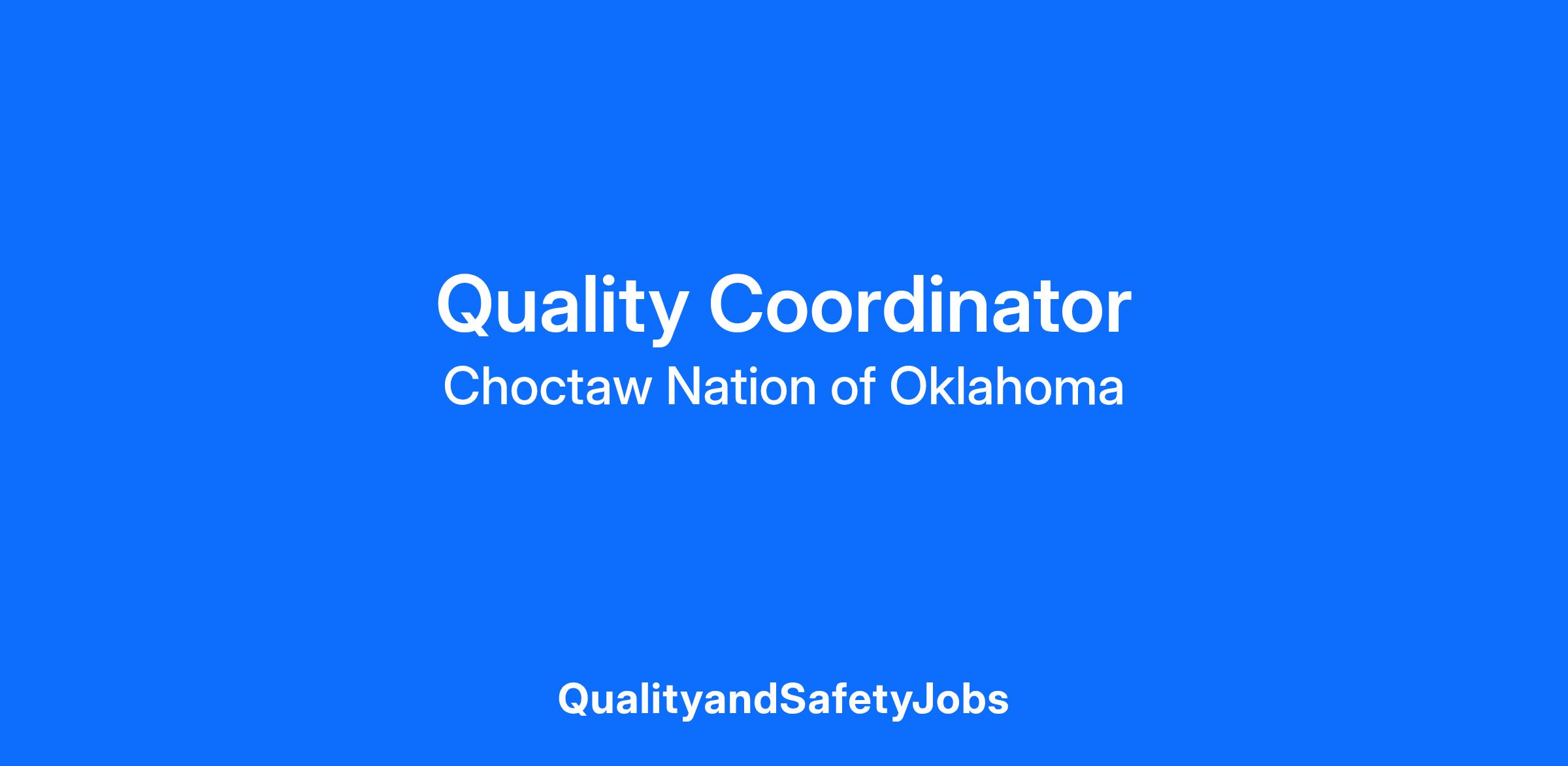 Job Purpose or Objective(s): As the Quality Coordinator of the Environment of Care (EOC) and Life Safety (LS), you will monitor the Environment of Care Accreditation Plans and EOC/Life Safety requirements and initiatives to minimize hazards and reduce risk of injury to patients, visitors, and employees for Choctaw Nation Health System including but not limited to hospital, clinic sites, and residential treatment centers. You will report to the Director.