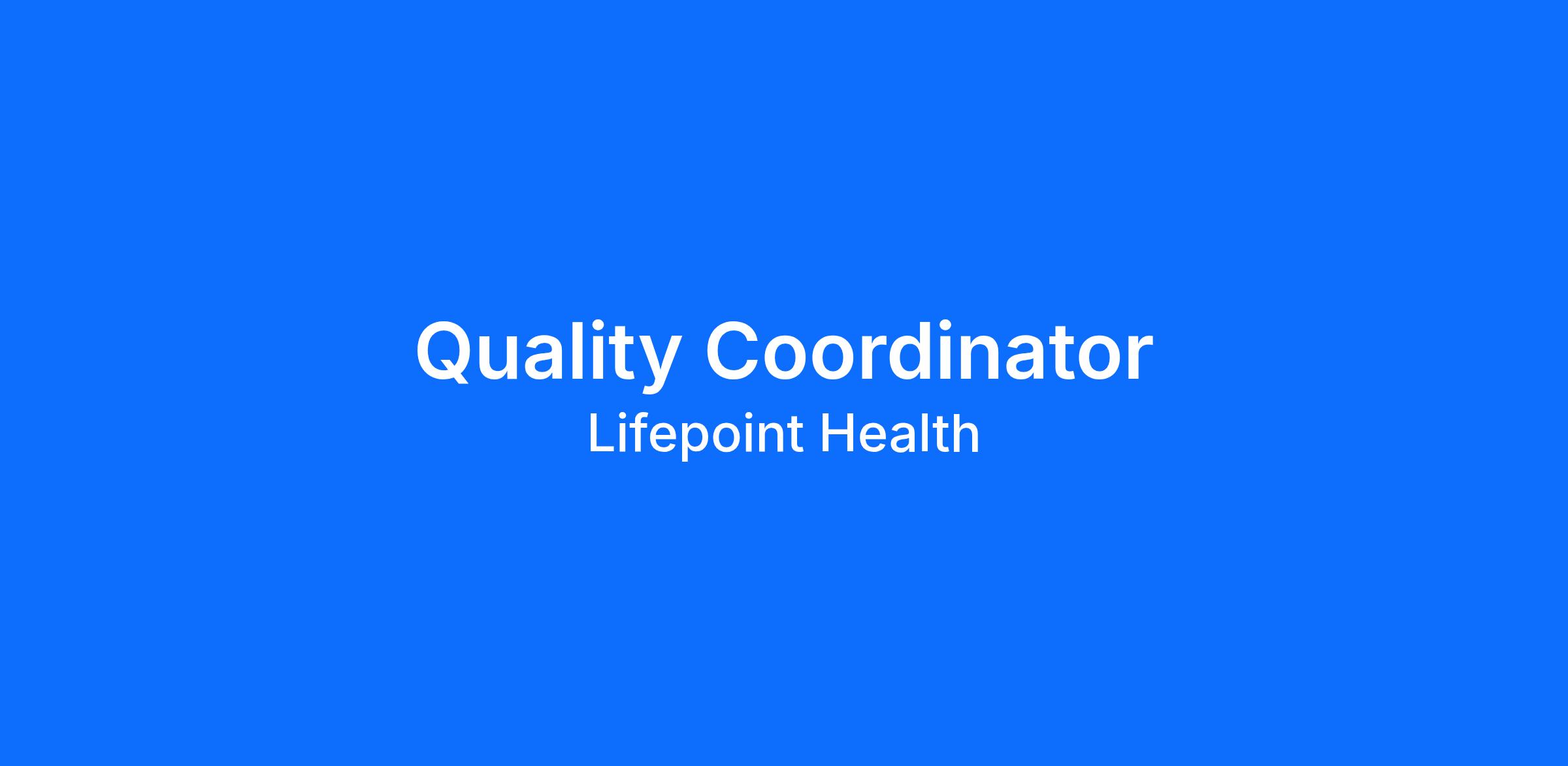 The Coordinator, Quality is responsible for the coordination and project management support of the various pro-grams within the Health Support Center (HSC) Quality Department, specifically the National Quality Program (NQP), Culture of Safety and Engagement (CoSE) survey, Executive Patient Safety Conference, and day to day team projects.