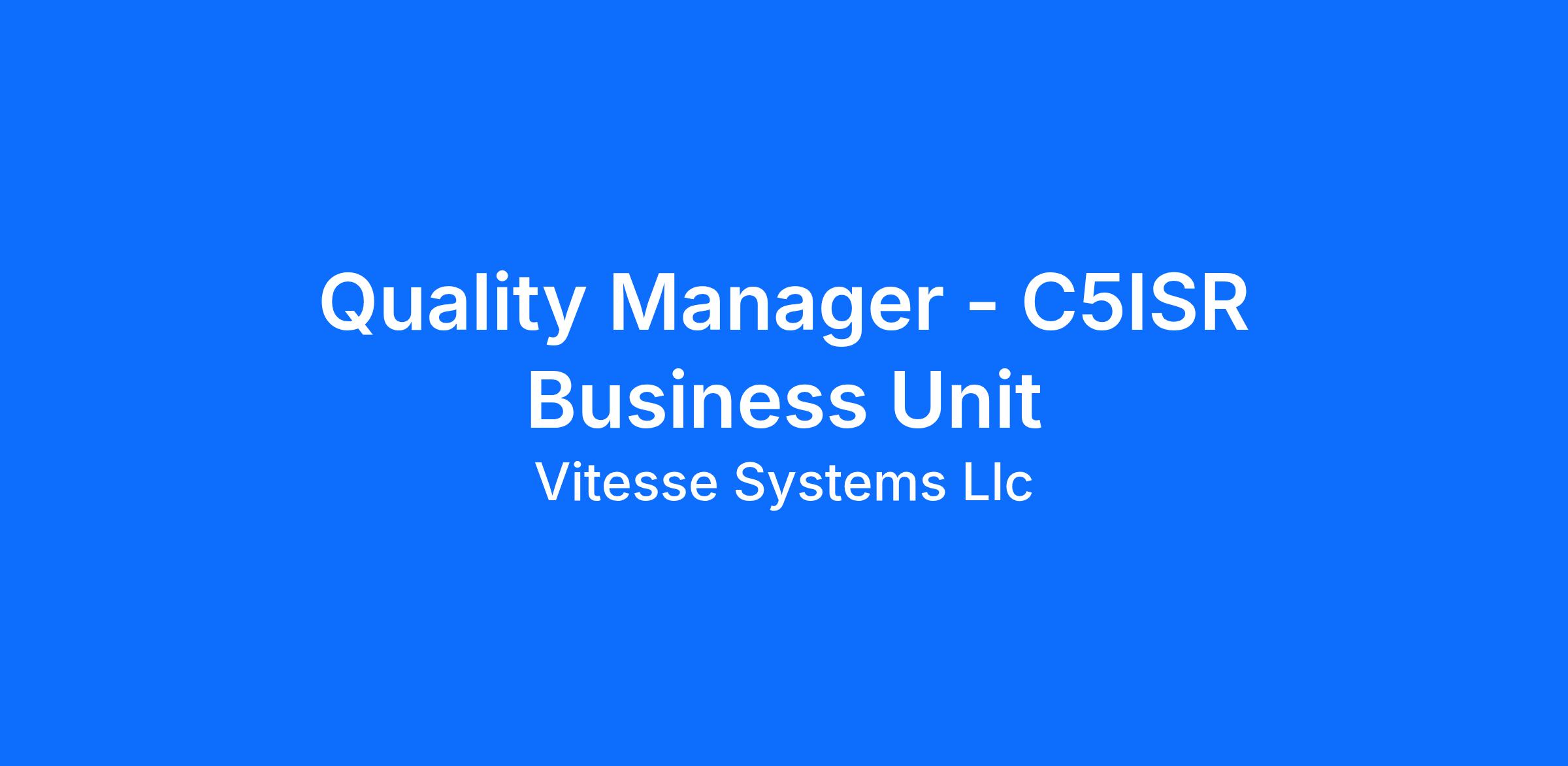 Vitesse Systems is looking for a Quality Manager – C5ISR Business Unit to join the team! The Quality Manager -C5ISR Business unit will serve as a leader in advancement, improvement, and maintenance of quality functions and philosophies, in accordance with customer, industry, and AS9100 standards. This role will be based in Longmont, Colorado with up to 50% travel to Harbor City, California.