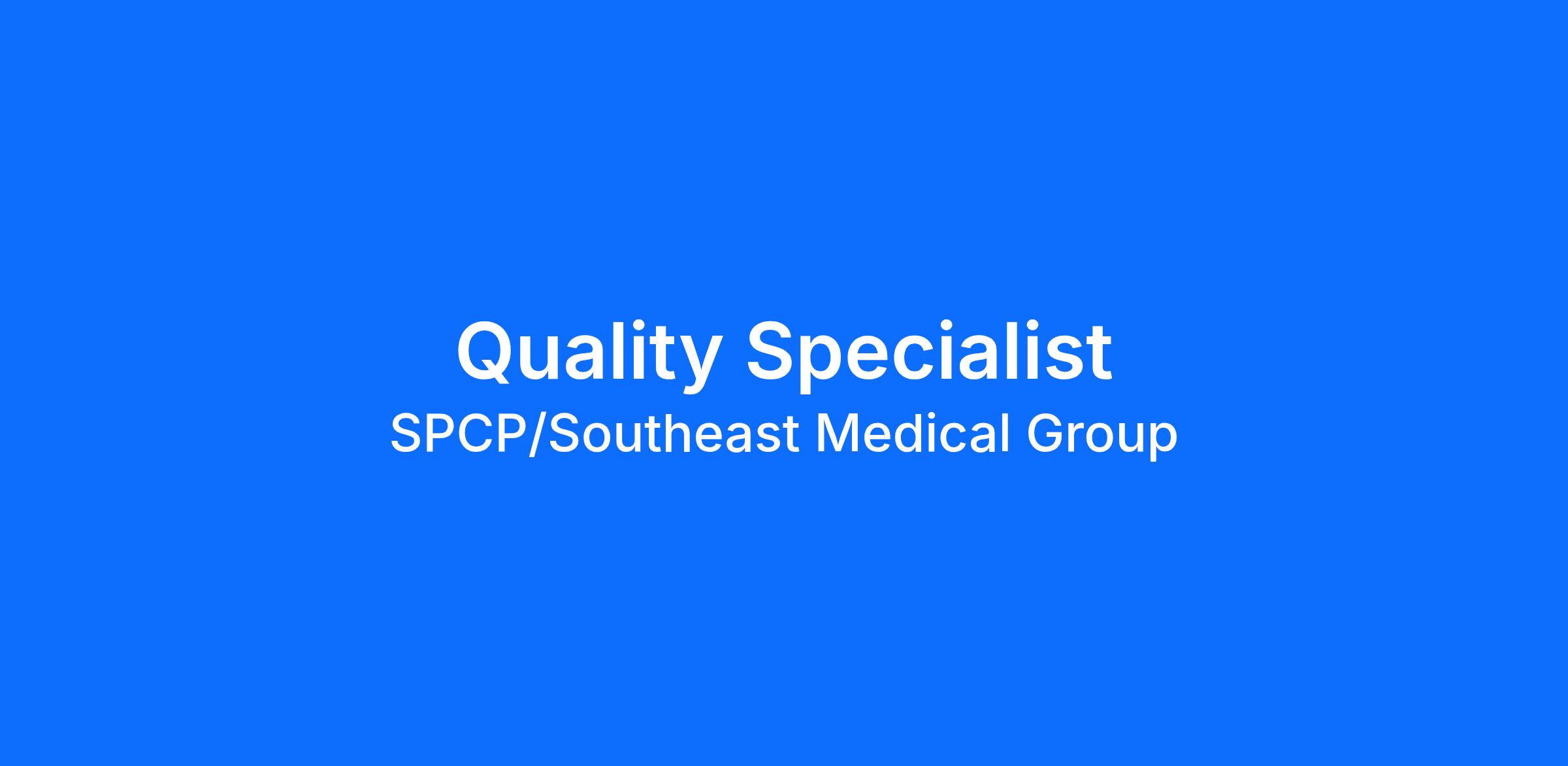 Southeast Primary Care Partners/Southeast Medical Group (SEMG) is seeking a dedicated and dynamic Quality Specialist to join our team. This pivotal role serves as the crucial link between our clinic's lead physician and the SEMG’s population health team, with a focus on driving and improving quality outcomes for our patients. The ideal candidate will be instrumental in executing key initiatives aimed at enhancing performance on quality measures, actively participating in monthly quality review meetings, and identifying patients for enrollment in SEMG’s clinical programs.