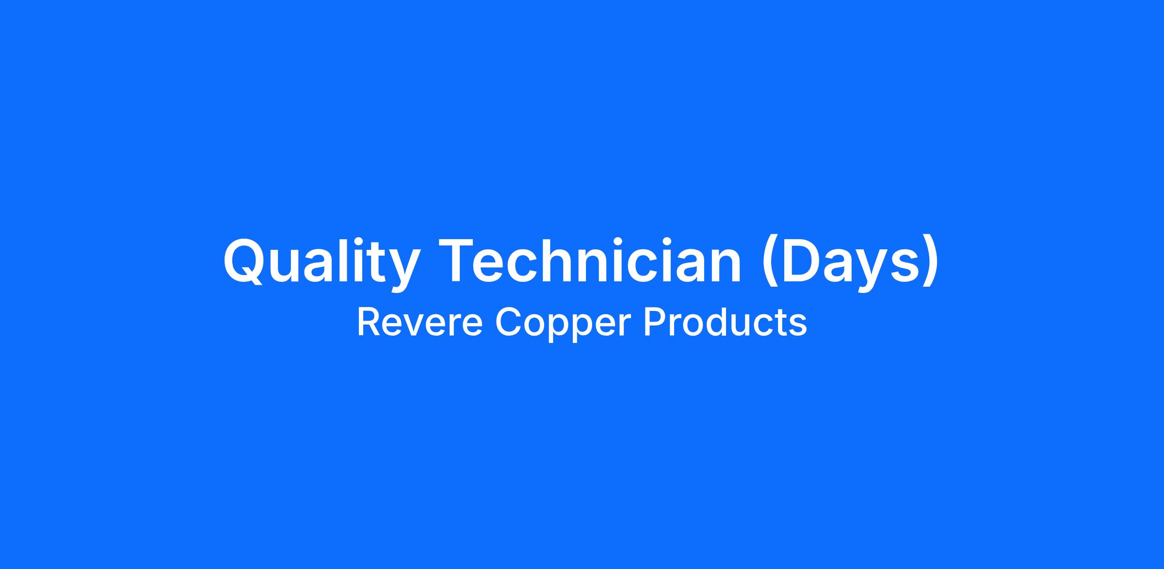 Revere Copper Products is looking for a Quality Technician to join our respected team of professionals in Rome, NY. Founded by Paul Revere in 1801, our company is one of the finest copper manufacturers in the world. We have over one million square feet of manufacturing space in Rome, NY. We are an employee-owned company, competing in the architectural, electrical, data center, telecommunications, air conditioning, industrial machinery, equipment, automotive, antimicrobial, and other emerging markets. We proudly work as a team in a safe, environmentally sound and ethical manner to achieve absolute customer satisfaction through superior quality and reliability. We strive to continue the pioneering tradition of our founder, Paul Revere.