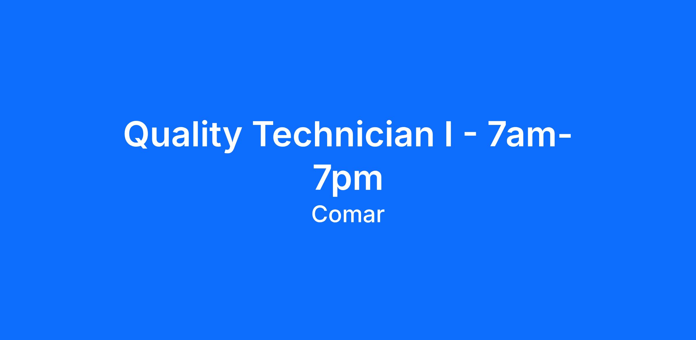 QUALITY TECHNICIAN I