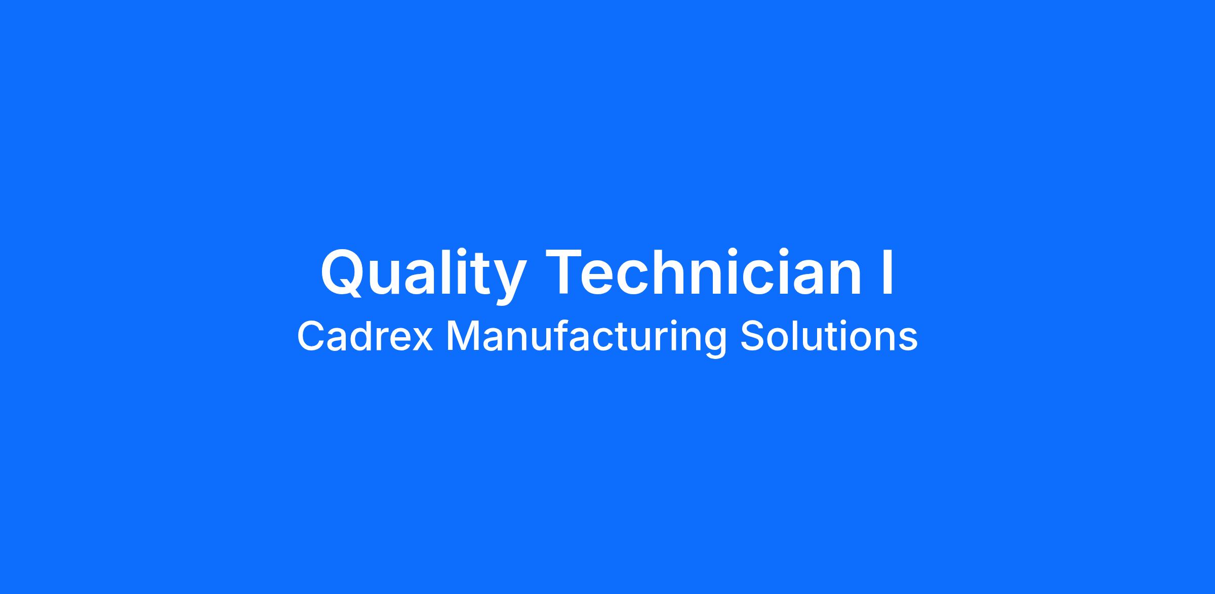 Cadrex is searching for a Quality Technician I to directly support our manufacturing practices through development, evaluation, and continual improvement of processes using quality concepts, principles and methodologies with the goal of consistently meeting or exceeding customer expectations of quality.