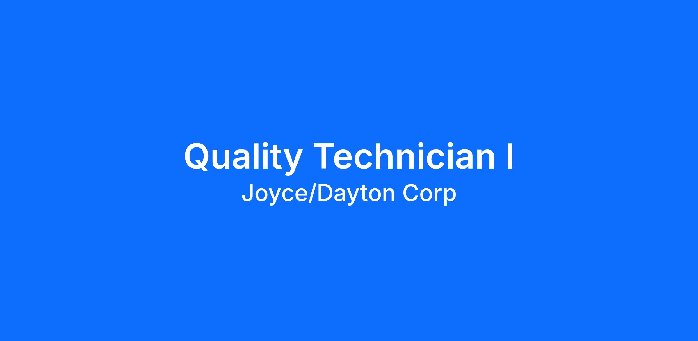 Joyce/Dayton Corp. is an Equal Opportunity Employer. All qualified applicants will receive consideration for employment and will not be discriminated against on the basis of age, race, color, religion, gender, sexual orientation, national origin, disability, or veteran status.