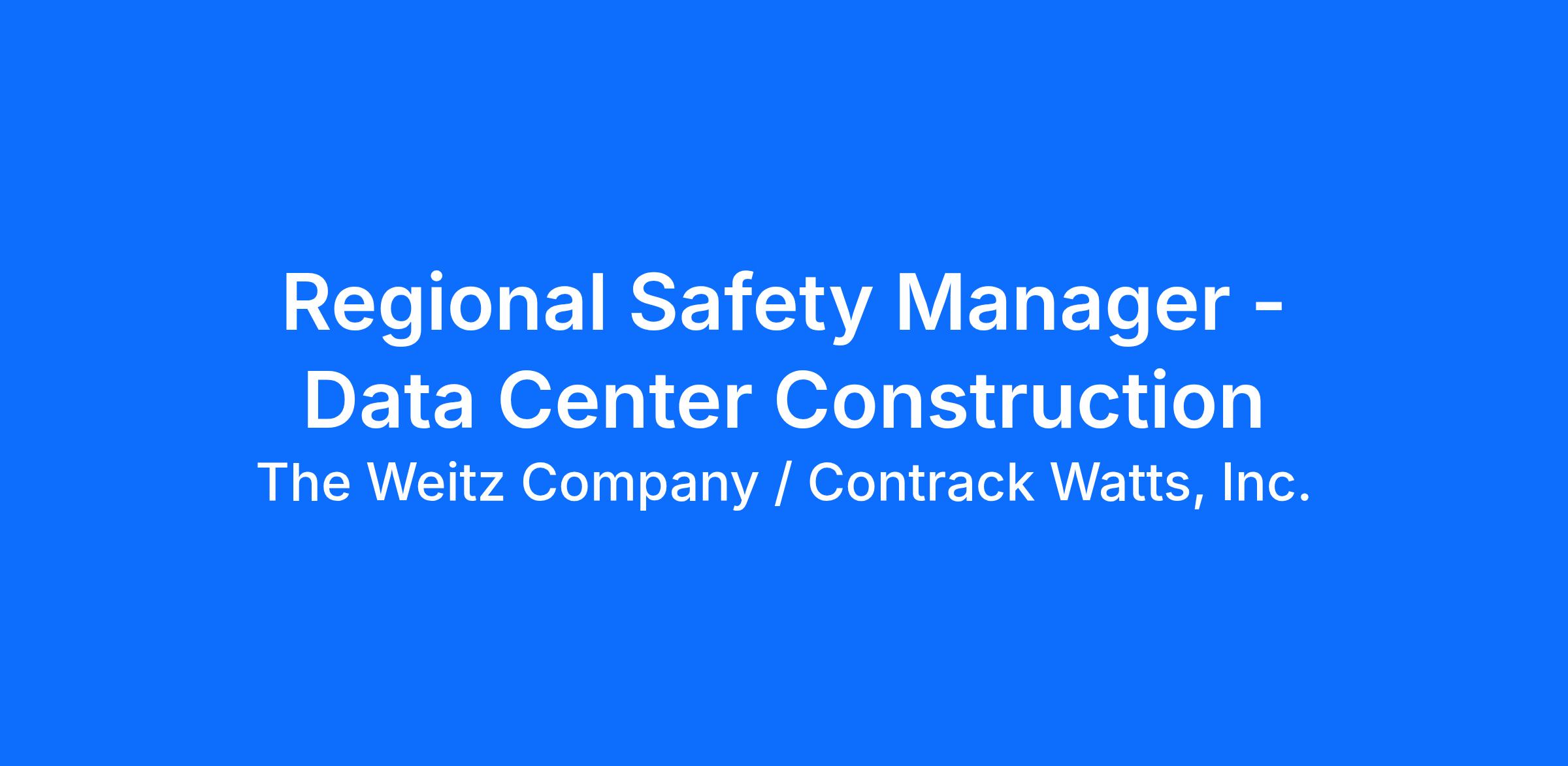 The Weitz Company is seeking a Regional Safety Manager based in Des Moines, IA, who will provide support to data center projects in Iowa and Wisconsin.