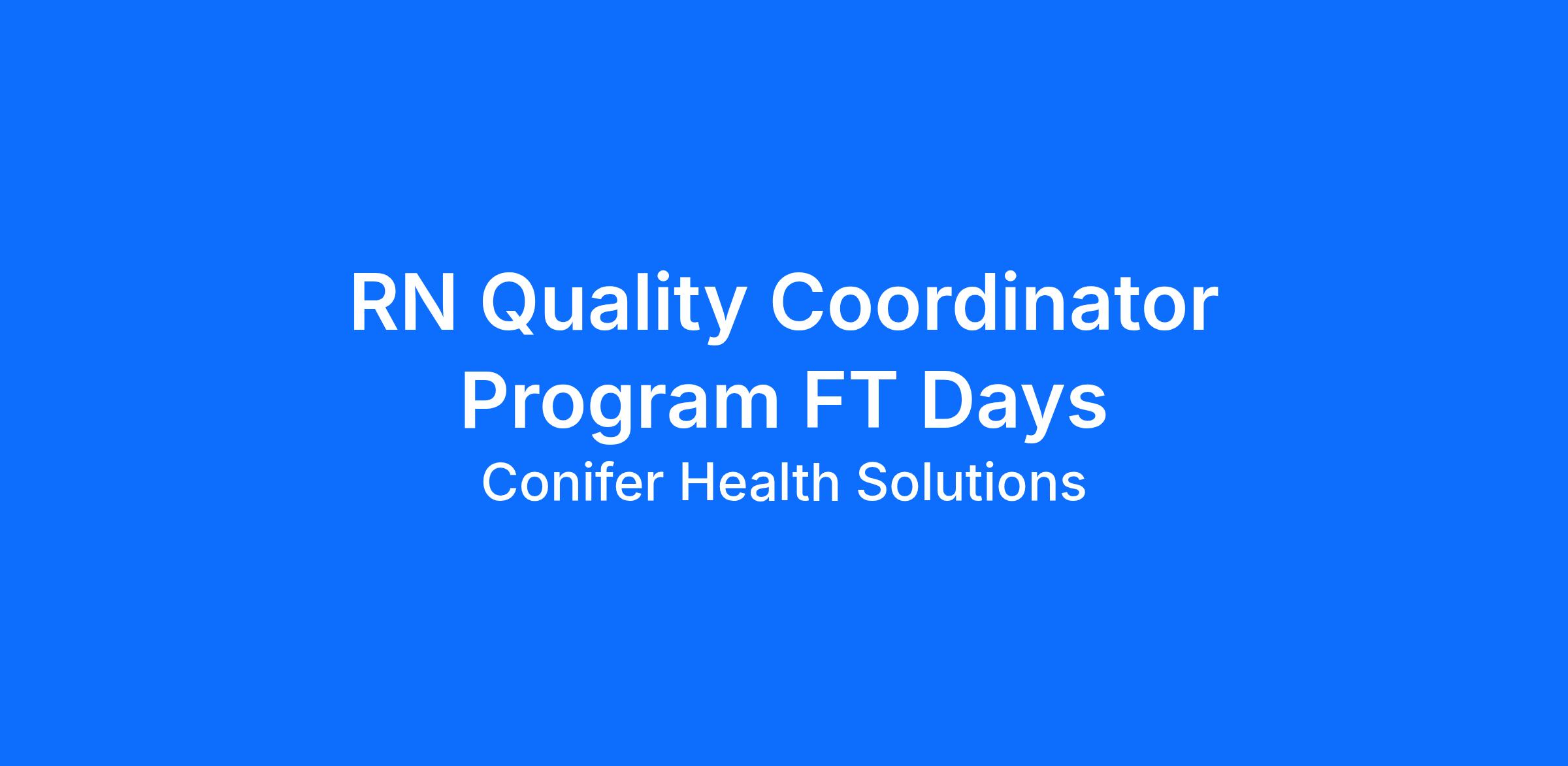 Quality Coordinator Program Full Time Days Position Summary