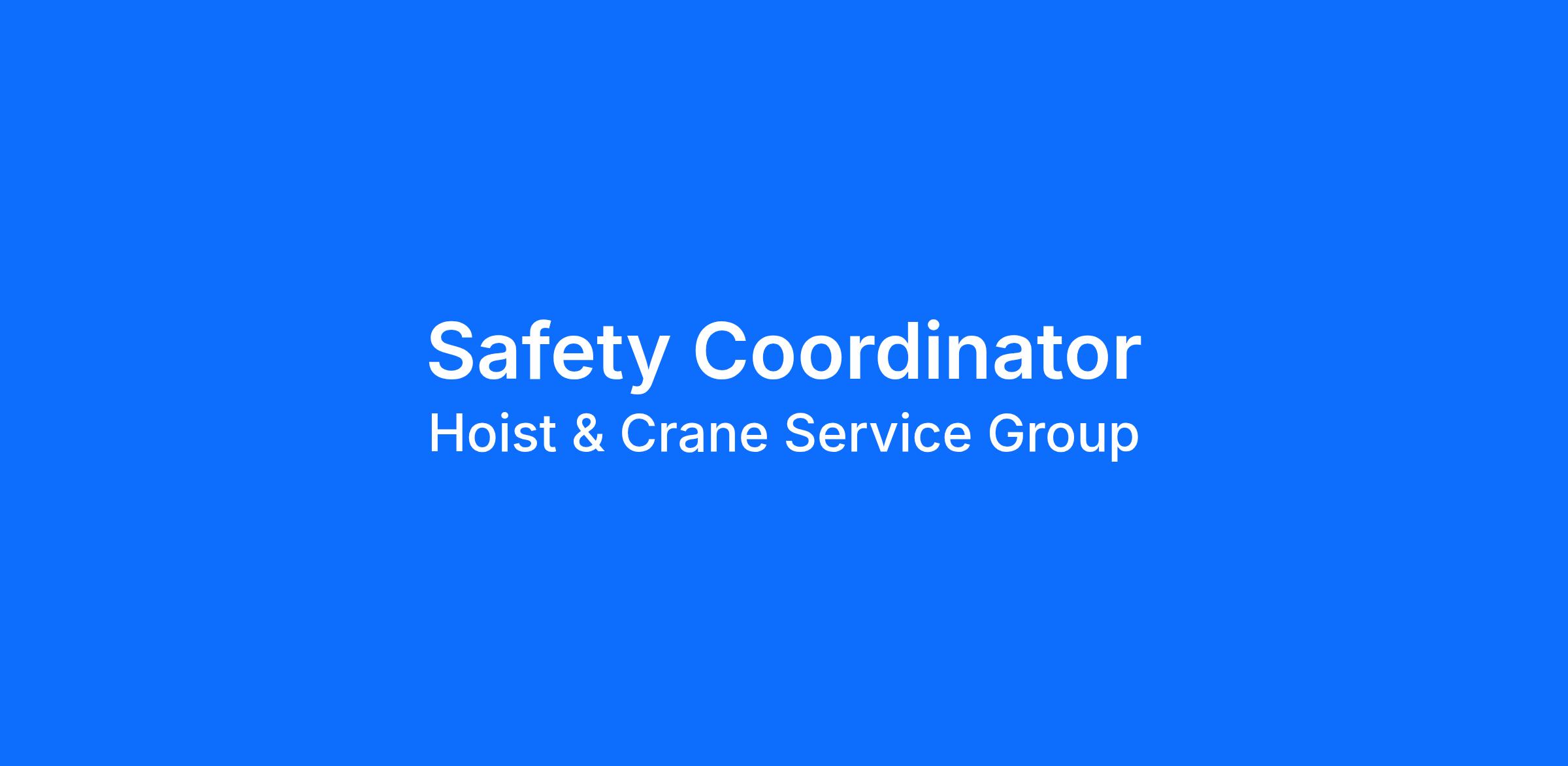Hoist & Crane Service Group is seeking a Safety Coordinator I. The Safety Coordinator I is responsible for: