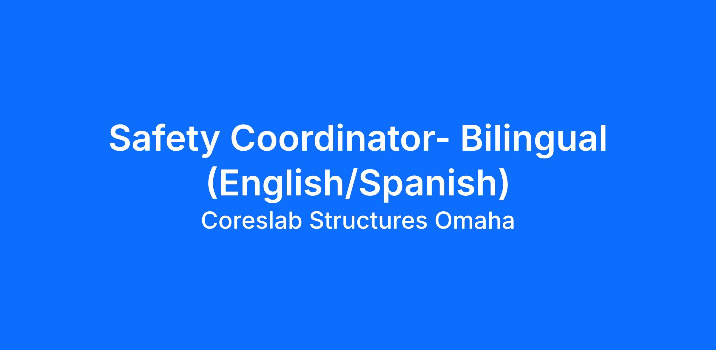 Safety Coordinator- Bilingual (English/Spanish)