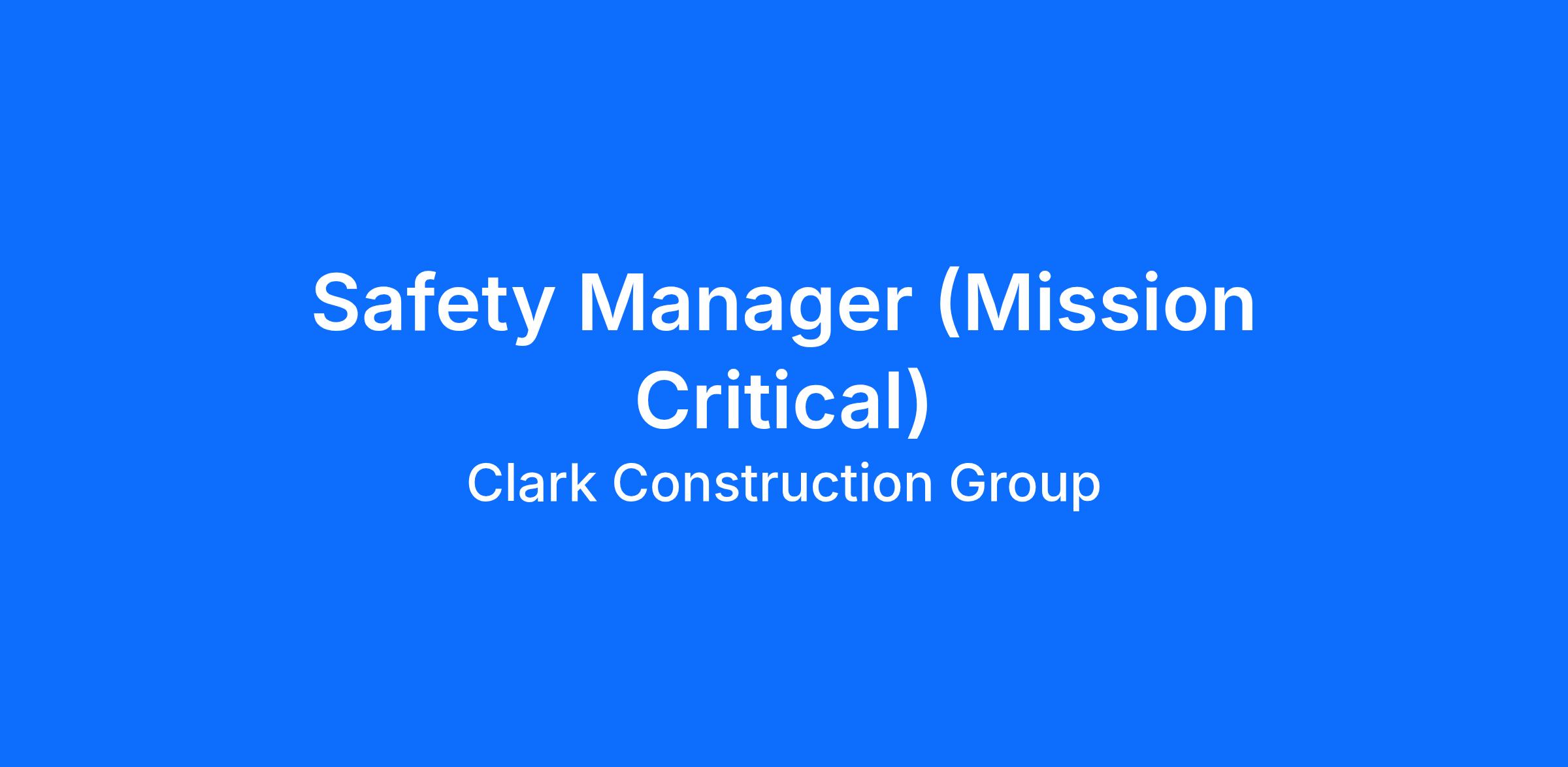 As a Safety Manager, you will ensure the safety of employees, trade partners, and the general public on our world class projects. The Safety Manager is responsible for creating a culture of care while enforcing Clark's Safety and Health Policy, as well as, local and federal safety standards on jobsites. This role leads employee safety education in partnership with project supervisors to develop safe work plans for all phases and tasks. To us, no project is successful unless it is built safely.