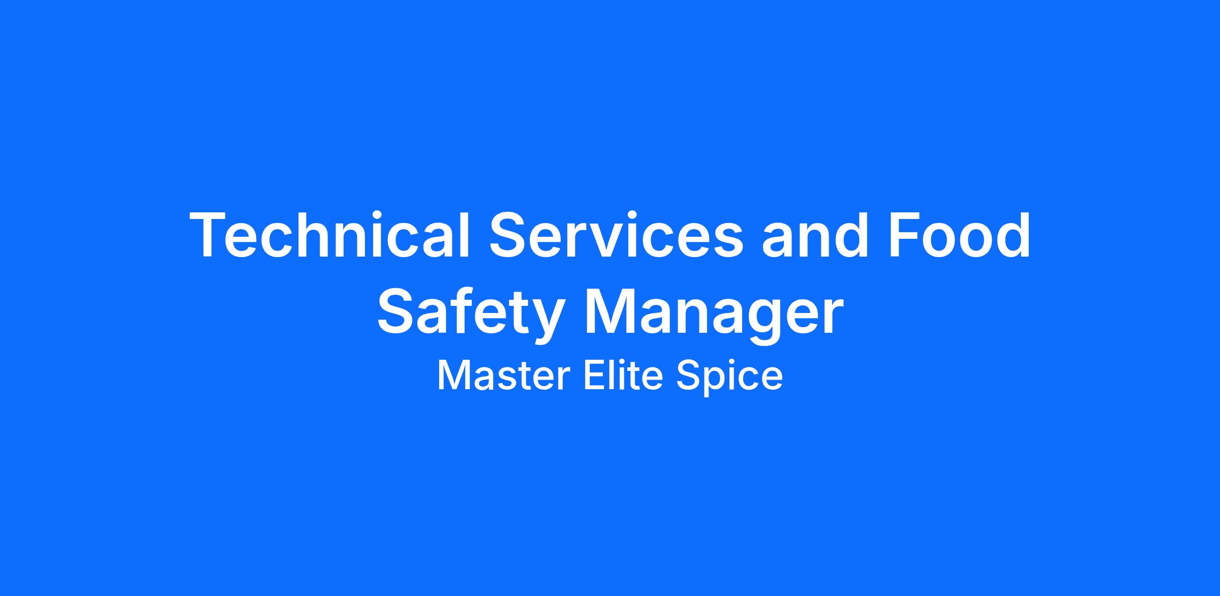 The Technical Service Manager is an authorized representative of Elite Spice and may travel on their behalf to audit suppliers, participate in technical forums, present information to customers, suppliers, and stakeholders, and visit other Elite Spice facilities.