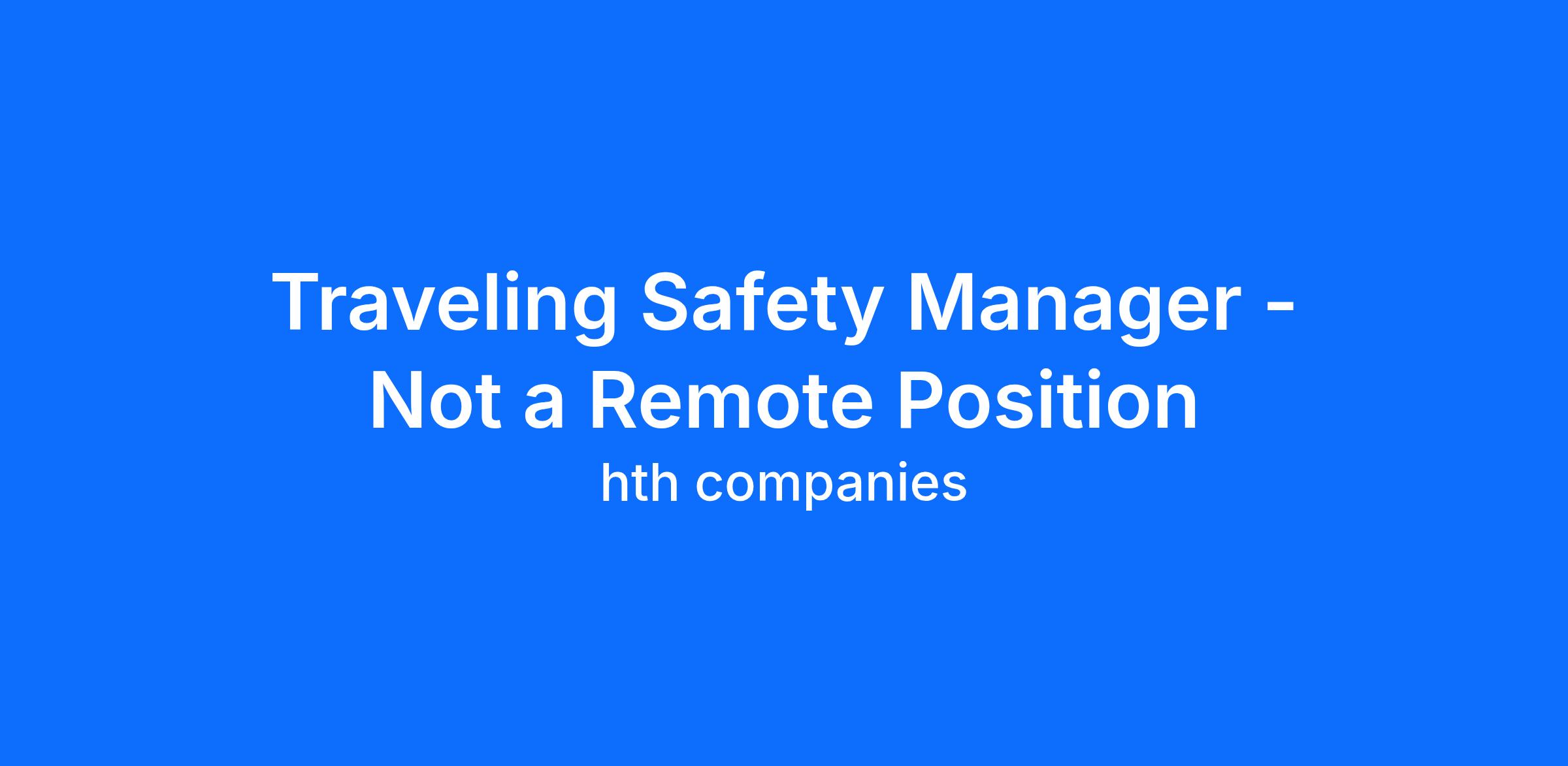 - This position requires travel. Approximately 70% of the Traveling Safety Manager's time is expected to be 'in the field'.