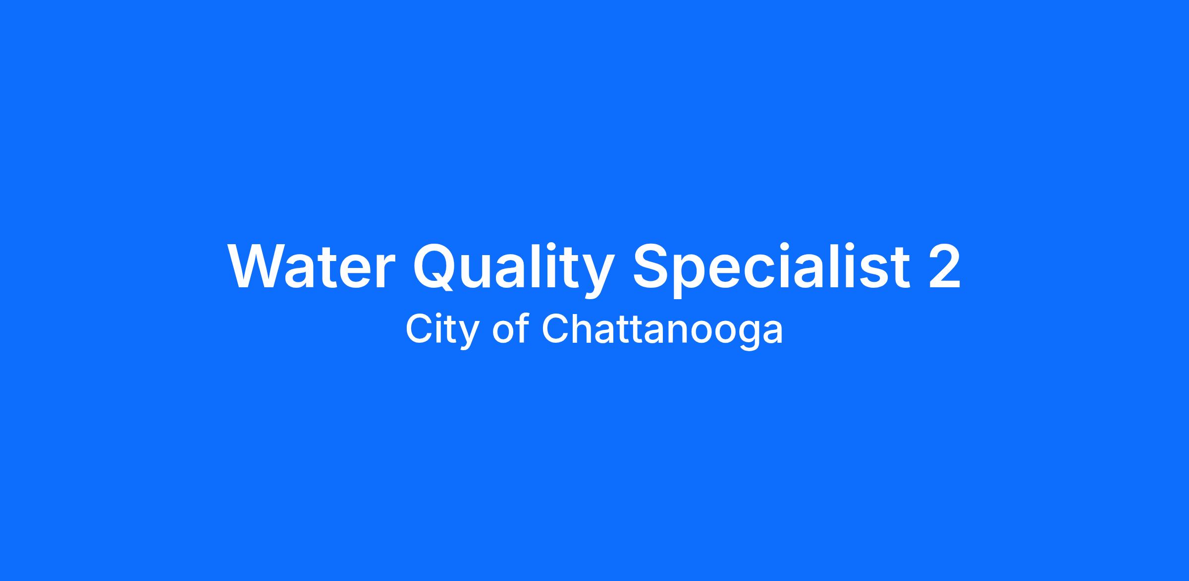The Water Quality Specialist 2 is the fourth level of a four-level water quality series.